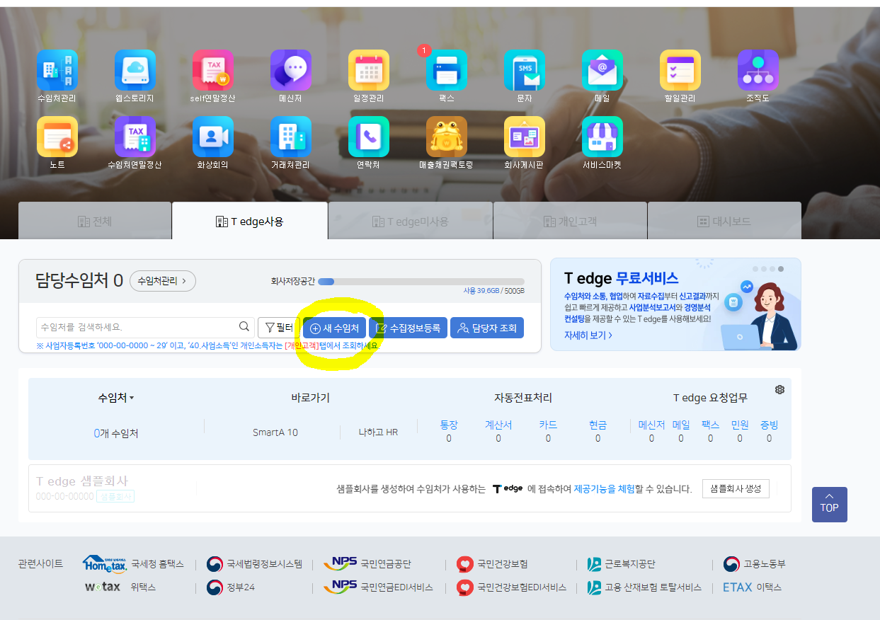 회사 관리자가 아닌 서비스 관리자(세무대리인)인 경우에는 Smart A 10 권한설정으로 이동됩니다.