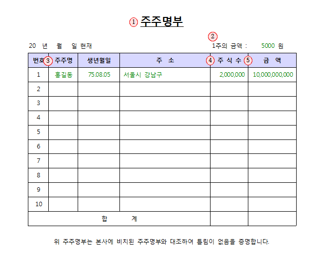 주주명부는 주주의 주권에 대해 명확하게 기록한 문서 입니다 주주명부 작성요령과 내용에 대해 알아보도록 하겠습니다.